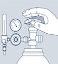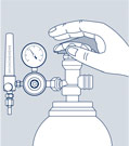 | Abra y cierre la válvula en forma lenta. Asegúrese que las manos y la válvula estén limpias y libres de grasa o aceite. |