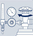 | Las válvulas y reguladores deben ser abiertos y cerrados con lentitud para evitar altas presiones de salida, que pueden provocar el deterioro del equipo e incluso incendiar el regulador si hubiera una fuente de calor cercana. |